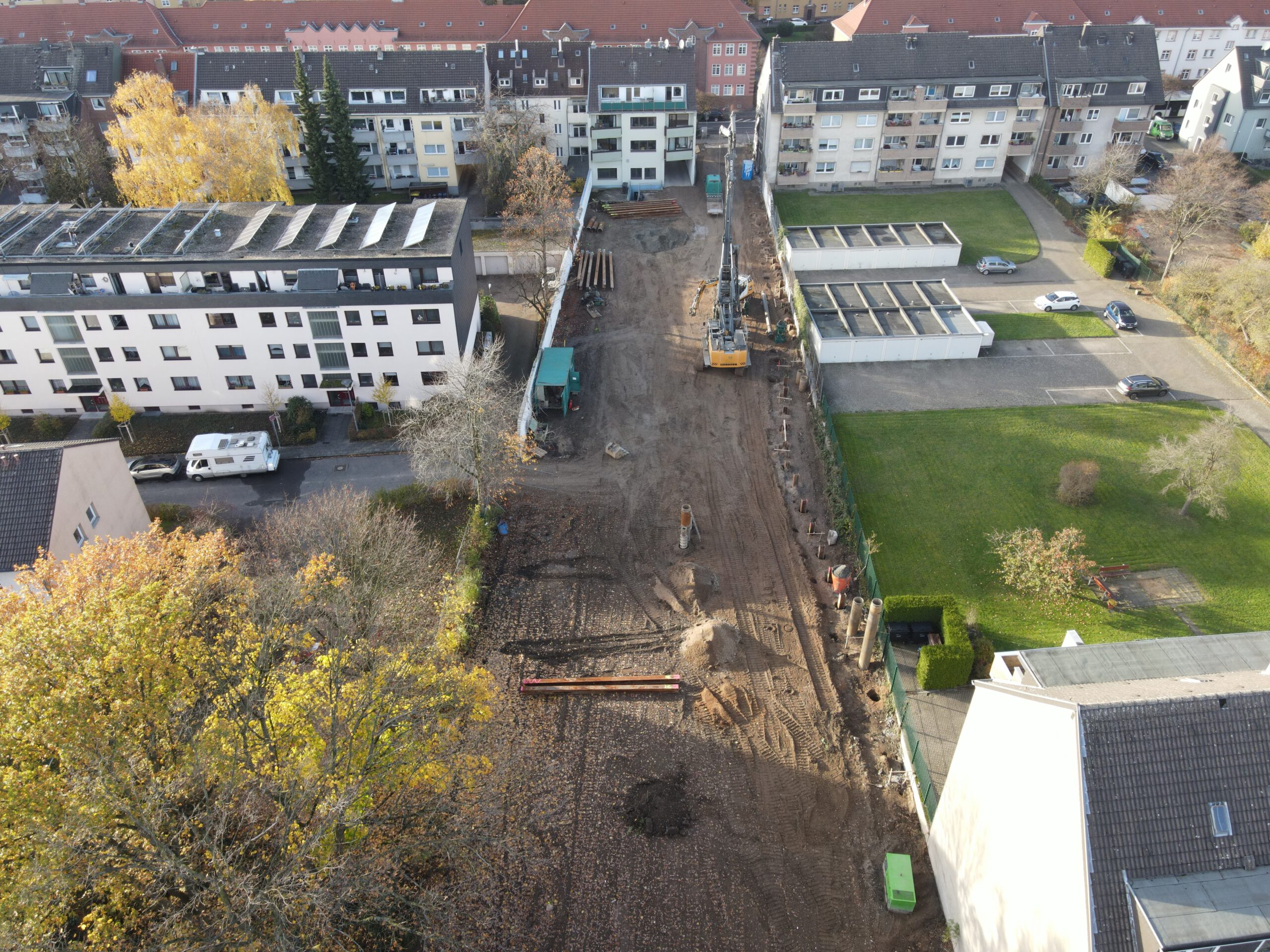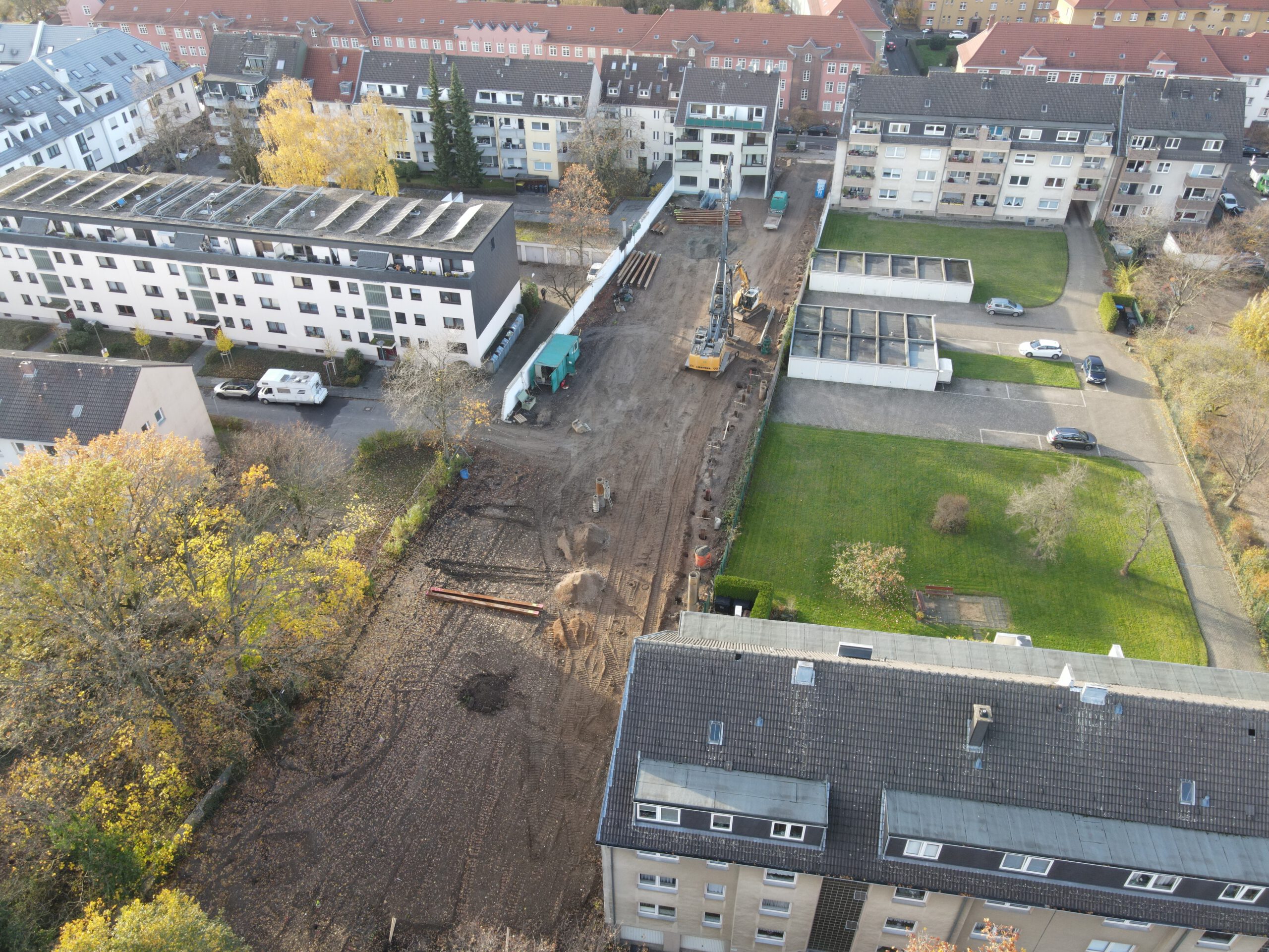 November 2025: Die Verbauarbeiten haben begonnen und laufen derzeit auf Hochtouren. Mit der Sicherung der Baugrube wird ein weiterer wichtiger Schritt in der Vorbereitung der Erdarbeiten sowie der späteren Ausschachtung der Tiefgarage umgesetzt.